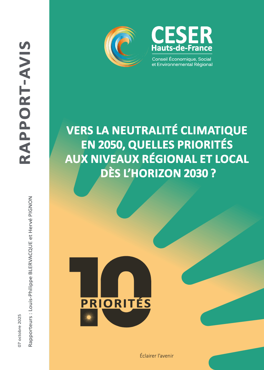 Rapport-avis du Ceser Hauts-de-France : « Vers la neutralité climatique en 2050, quelles priorités aux niveaux régional et local dès l’horizon 2030 ? »